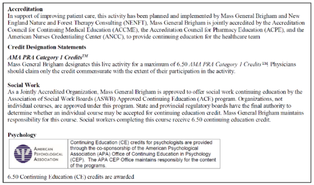 Educational Design, Association of Nature and Forest Therapy Guides and Programs.