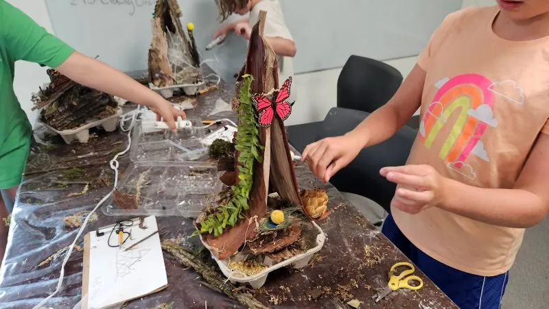 through the trails to gather natural materials for building your very own